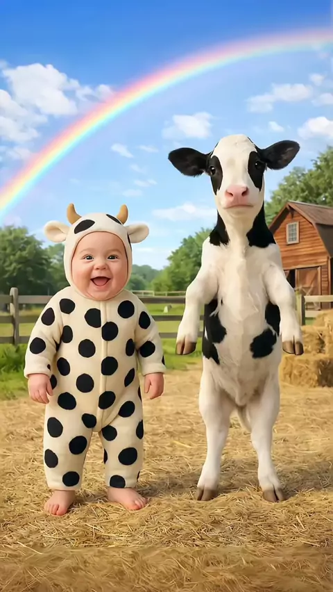 BABY AND COW DANCING ON THE FARM 🥰😂 #baby #babydance #funnybaby #funnydance