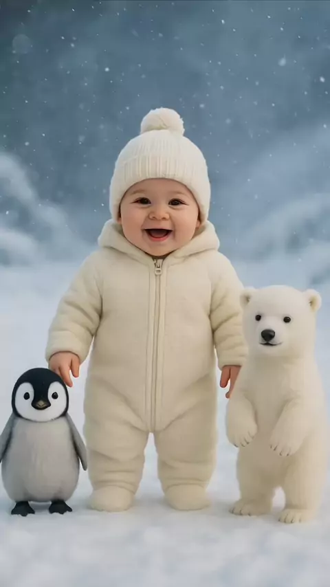 Cute baby dancing on Nerve with his little friends 🐧🐻‍❄️❤️ #baby #kidsoftiktok #funnydance #babydance #funnybaby