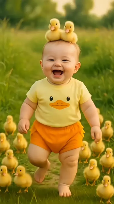 baby laughing with several ducklings 🐥❤️ #baby #funnykids #funnybaby #kidsoftiktok #kids