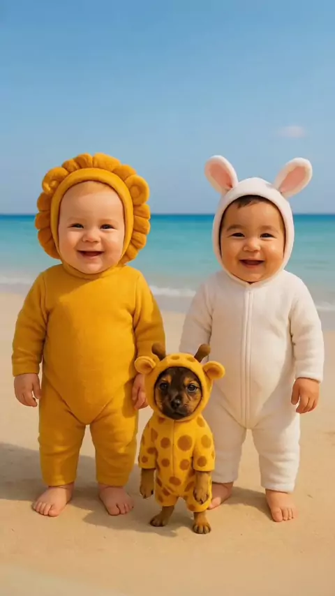Cute babies dancing on the beach with a dog 🥰😂 #baby #funnydance #babydance #funnybaby #kidsoftiktok