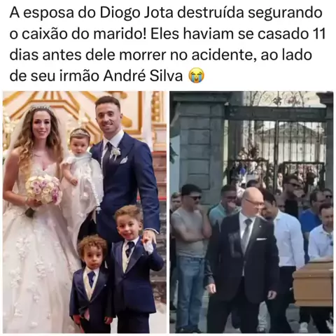 O funeral do jogador Diogo Jota e do irmão dele,André Silva, mortos em um acidente de carro na Espanha na quinta-feira (3), começou neste sábado (5) no norte de Portugal. A cerimônia de despedida ocorre em Gondomar, cidade na região do Porto Jota e Silva cresceram, no norte do país europeu. A morte de Diogo Jota ocorre apenas 11 dias depois de o jogador se casar. Menos de 24 horas antes do acidente, ele e a esposa, Rute Cardoso, postaram o vídeo do dia do casamento, realizado em Portug