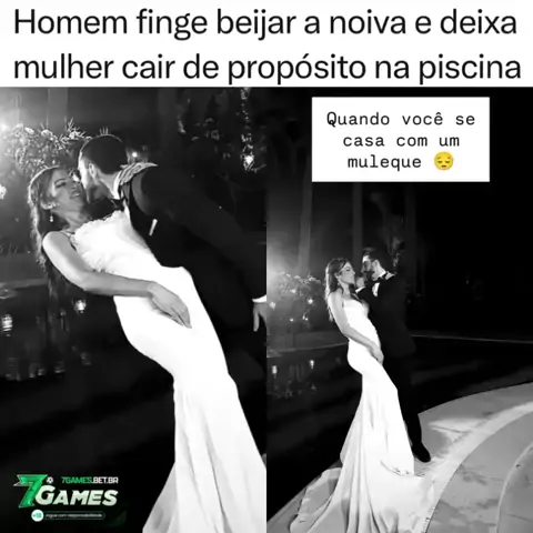 Durante uma comemoração, homem finge que vai beijar a noiva e a derruba de propósito na piscina. A cena inusitada chamou atenção nas redes sociais Siga @bafafanoar para ver mais! 📌 (Vídeo/Reprodução: @/falaajessica)