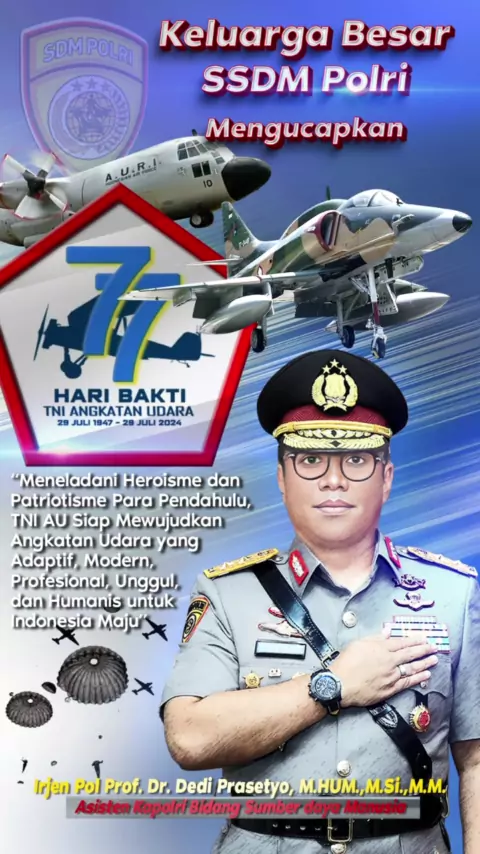 AS SDM POLRI MENGUCAPKAN SELAMAT HARI BAKTI TNI ANGKATAN UDARA KE 77
