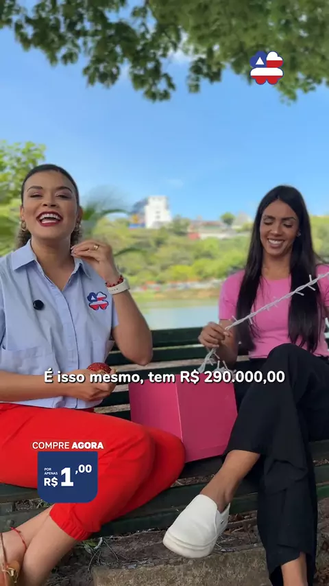 UM real pode realizar seus sonhos! 💰🤑 No Bahia dá Sorte dessa semana, com apenas R$ 1,00 você concorre a R$ 290 MIL em prêmios: R$ 200 MIL no 4º prêmio, R$ 50 MIL no 3º prêmio, R$ 15 MIL no 2º prêmio, R$ 10 MIL no 1º prêmio, e mais 15 giros de R$ 1.000. São R$ 290 MIL em prêmios, minha gente! 💰🤩 📲 Clique no link da bio e garanta agora o mesmo o seu título do Bahia dá Sorte! 🍀 *As condições gerais e o regulamento do produto podem ser consultados no endereço eletrônico: www.gov.br/susep/p
