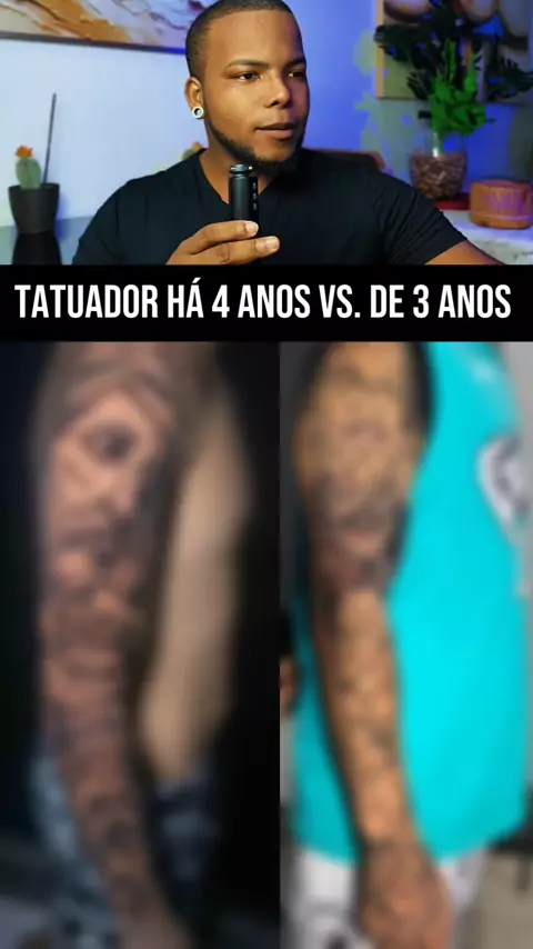 4 anos de tatuagem vs 1 ano. O tempo aparece no resultado? Nem sempre do jeito que você imagina. O Wesley, com 4 anos de carreira, trouxe um trabalho muito bem encaixado, aplicação consistente e excelente preservação de pele aberta. A composição está equilibrada e bem distribuída no membro. O ponto de ajuste está na indefinição do rosto do anjo no antebraço. Em realismo, às vezes é necessário adicionar traços estratégicos para criar separação e leitura clara entre os elementos. Definição não ti