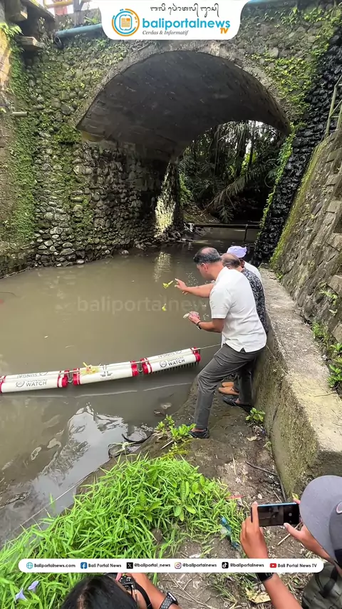Pemasangan barrier atau penghalang sampah di sungai di Jln. Pendawa Kekeran, Mengwi, Badung, Kamis (6/3/2025) #baliportalnews #sungaiwatch #badung #sampah
