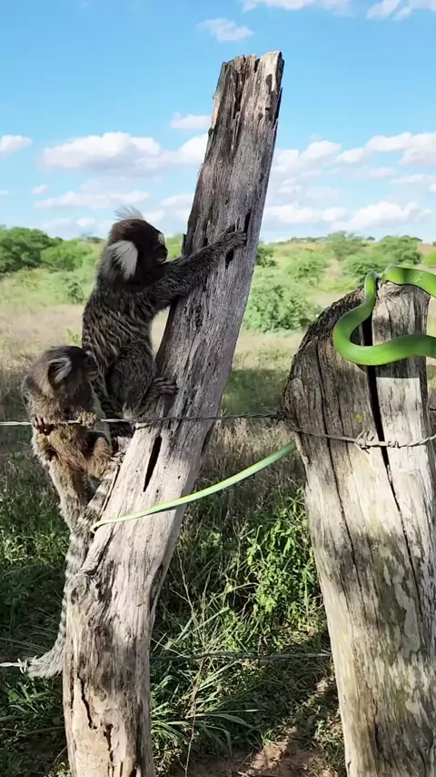Os macacos saguis deixado a cobra zangada.