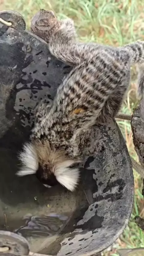 Macaco sagui com muita sede.