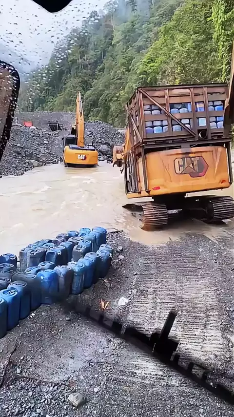 Você acha que é perigoso enviar materiais neste rio rápido? # dig machine # digger # digger video