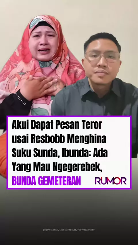 Ibunda dari streamer Resbobb mengaku panik dan ketakutan setelah menerima teror berupa pesan dan telepon dari sejumlah orang tidak dikenal. Hal ini terjadi usai pernyataan Resbobb yang menghina suku Sunda dan pendukung Persib Bandung, viral di media sosial hingga menuai kecaman publik #resbobb #bunda #bigmo #rumormedia #viral