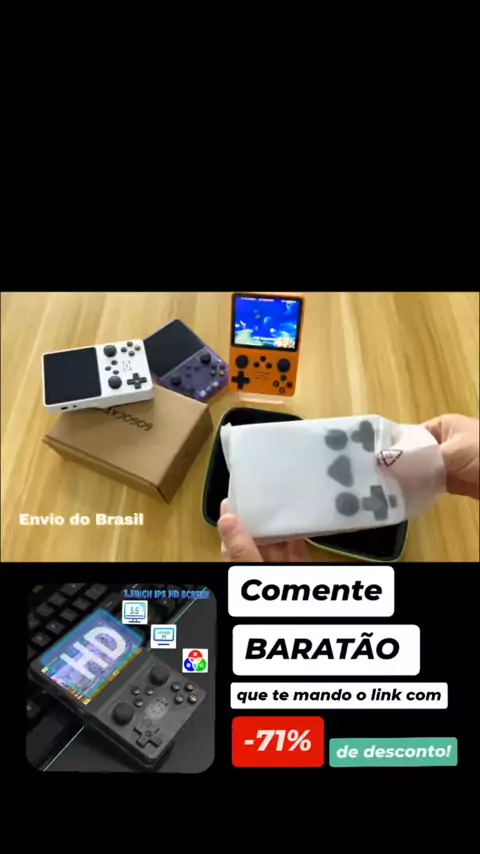 🎮 Reviva sua infância com o Console Portátil R35S! São 15.000 jogos clássicos já instalados (PS1, N64, PSP, GBA, Arcade e muito mais) 😱. 📺 Tela HD IPS de 3,5” 🔋 Bateria 3500mAh até 6h de jogatina 💾 Expansível até 256GB 👉 Quer garantir o seu com desconto? Comenta BARATÃO que eu te mando o link agora mesmo! #gamers #baratão #achados #videogame