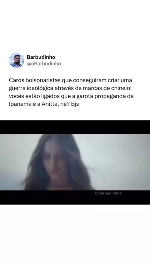 Caros bolsonaristas que conseguiram criar uma guerra ideológica através de marcas de chinelo: vocês estão ligados que a garota propaganda da Ipanema é a Anitta, né? Bjs