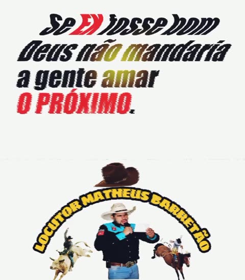 📌Locutor de Rodeios🎤🤠 📌Tour 2021🎤🐂🤠 📌Desde 2016 animando a galera!💥 📌O locutor mais animado do Brasil!💥🤠🎤 📌Segura peão🐂🤠 📌Aperta o calo da butina!🤠🎤 💥 Facebook e Instagram Locutor Matheus Barretão 🙏🏻 🤝 número para contato: 32 9846