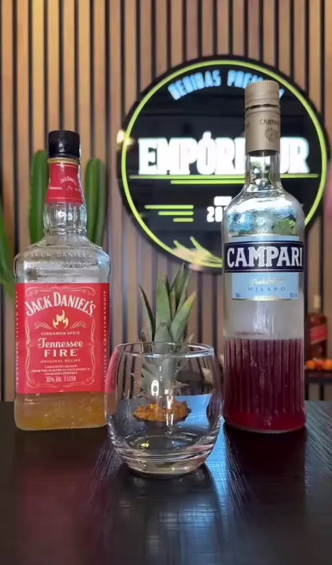 CAMPARI FIRE 🔥 Que combinação perfeita senhoras e senhores. Segue receita completa: 🔸copo baixo 🔸abacaxi a gosto 🔸macere bem o abacaxi para extrair o suco 🔸bastante gelo 🔸40ml de Jack Fire 🔸complete com Campari 🔸misture bem com uma colher Seu drink está pronto! Agora só curtir. Beba com responsabilidade. Saúde 🍹#Cantakwai #viral #bartender