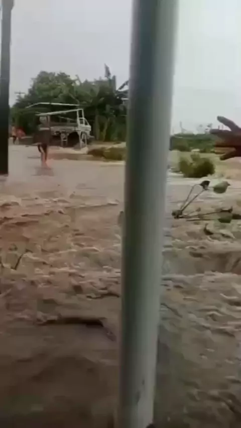 hujan deras yang mengguyur sejak pagi hingga sore hari ini 31/01/26/ membuat tanggul Citarum jebol dann berakibat sungai muara gembong banjir hinggaembuat warga sekitar panik #Citarum #tanggul #muaragembong #banjir #hujanderas