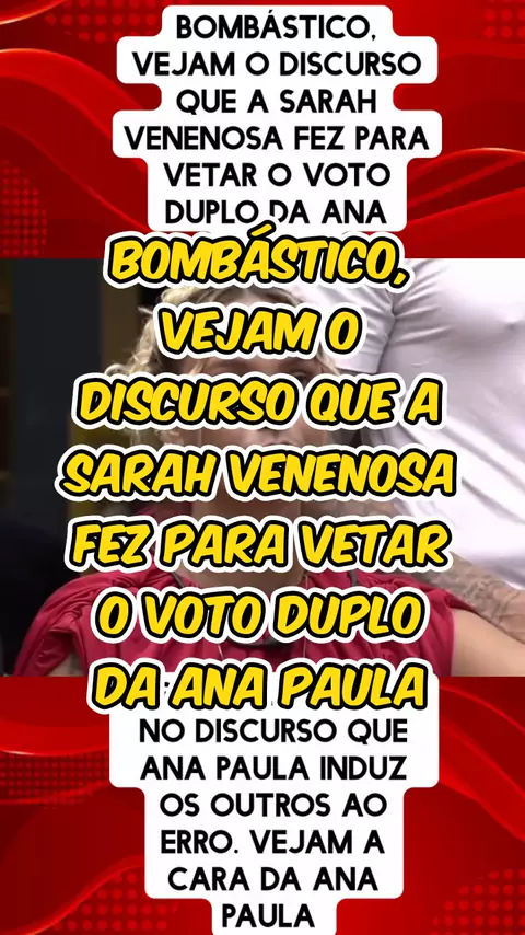bombástico, vejam o discurso que a Sarah venenosa fez para vetar o voto duplo da Ana Paula #bomprakawai #bbb26 #entretenimento #fofoca #viraliza