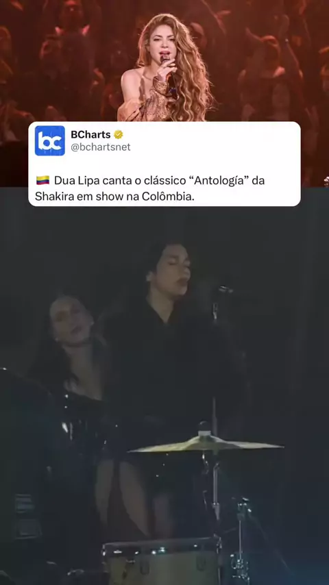 🇨🇴 Em passagem pela Colômbia, Dua Lipa canta o clássico “Antología” de Shakira. Notas para nossa vocalista do Glee? Créditos: Reprodução / @dualipa / @shakira #dualipa #shakira #antologia