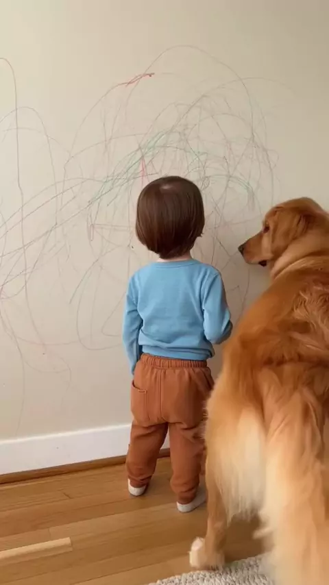 Cúmplices na arte e na diversão! 🎨🐶 Nada supera a amizade pura entre uma criança e seu melhor amigo de quatro patas. Impossível não sorrir! ❤️ . . #bebeecachorro #goldenretriever #momentofofura #amizadepura #videoviral