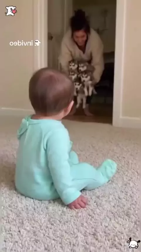 Cuidado: Excesso de fofura passando na sua tela! 👶🐾 Quem aguenta esse bebê com esses mini huskies? Impossível não sorrir! 🤩 . . #fofura #bebesfofos #huskysiberiano #filhotes #momentofofura