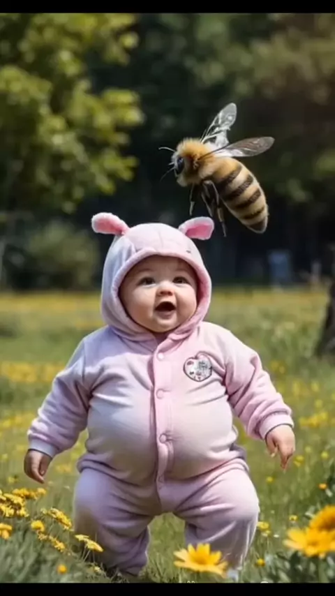 Neném e abelhinha 🐝🐷 • • #ViciadosEmUmBomDrama #PendênciasNoKwai #bebesfofos #eucresci #fofo