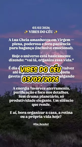 🔥 A vibe de hoje tá forte, mas antes de conquistar o mundo… que tal conquistar você mesma(o)? 😏 Vem fazer sua leitura de mapa astral comigo — prometo insights profundos e zero julgamentos (só verdades cósmicas ✨) Me chama no Whats: (51) 992424528 📲 Ou no Instagram: @be.healer Seu mapa tá pronto pra ser lido… eu só tô esperando você! 🧙‍♀️💫 Com amor, Bê! 💜 #vibesdocéu #behealer #astrologia #mapaastral