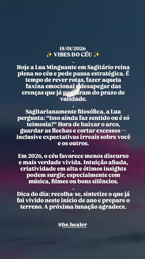 ✨ Lua Minguante pedindo revisão de rota, desapego e menos drama cósmico 😌 Se o céu está dando sinais, imagina o seu mapa astral falando diretamente com você… Vem descobrir seus caminhos, talentos e travas comigo 🌙✨ 📲 Leituras de Mapa Astral WhatsApp: (51) 99242-4528 Instagram: @be.healer Com Amor, Bê! #vibesdocéu #behealer #mensagemdodia #pensamentododia #mapaastral