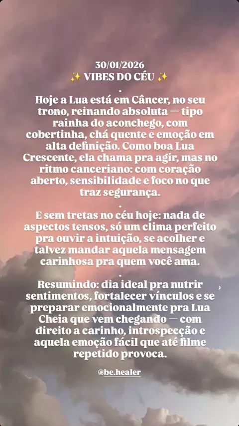Lua em Câncer ativando o modo sensível, intuitivo e carinhoso ON 🌙💙 Se você quer entender como essas vibes do céu mexem no seu mapa astral (e na sua vida real 👀), vem fazer sua leitura comigo! 📲 WhatsApp: (51) 99242-4528 📸 @be.healer Com Amor, Bê! #vibesdocéu #behealer #mensagemdodia #pensamentododia #mapaastral