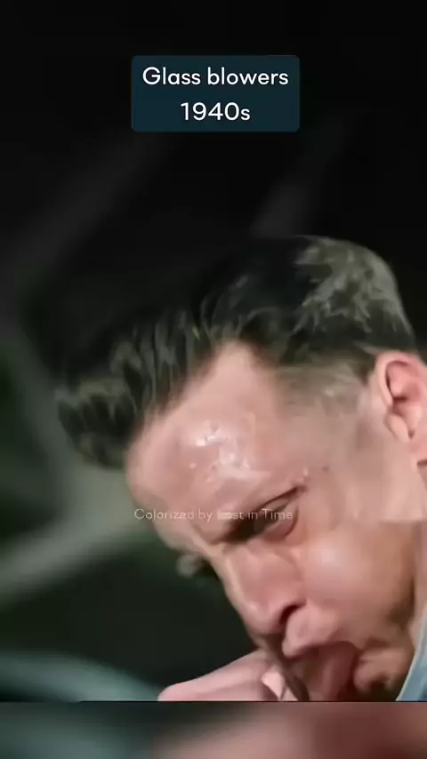 Rekaman berwarna proses pembuatan gelas kaca pasa Tahun 1940 #pond5 #