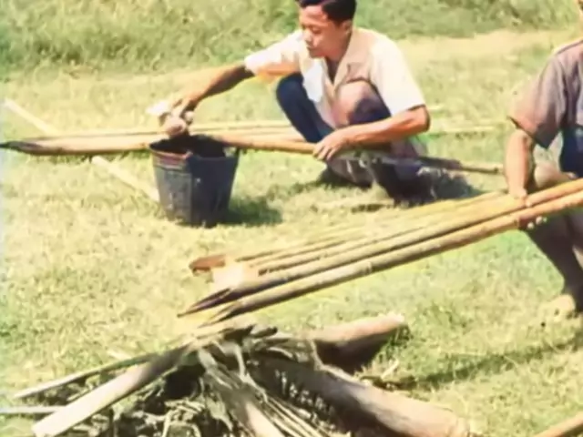 Rekaman Asli Teknik Penggunaan Bambu Runcing Indonesia di Masa Pendudukan Jepang Tahun 1943, direstorasi berwarna #pond5 #