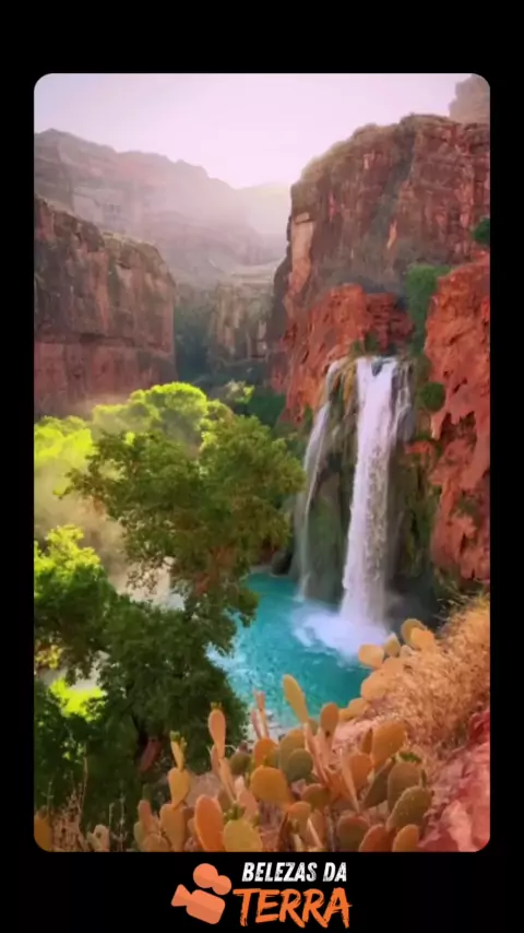 Havasu Falls, localizada no Grand Canyon, é uma das atrações naturais mais famosas dos Estados Unidos. Essas cachoeiras estão localizadas no território da Tribo Havasupai e são famosas por sua vibrante cor turquesa, causada pelo alto teor de cálcio da água. Para chegar às cataratas, você precisa percorrer uma rota desafiadora de cerca de 13 quilômetros a partir do início da trilha em Hualpai Hilltop. #maisviews #turismo #curiosidade #Viagens