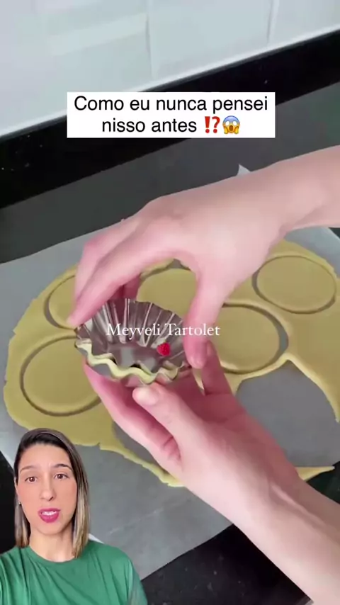😱Como eu nunca pensei nisso antes⁉️ 😋Fazer tortinhas dessa forma para um efeito lindo na decoração. 👇🏼Ingredientes 125 g de manteiga sem sal 1/2 xícara de açúcar 1 ovo Baunilha 2 xícaras de farinha de trigo 1 pitada de sal #diadasmães #Torta #morango #confeitaria