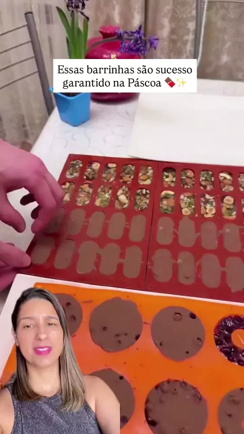 😱Essas barrinhas sĆ£o sucesso garantido na PĆ”scoa e qualquer comemoração especial. šŸ‘‡šŸ¼Ingredientes Gelatina com nozes - (Calda) 500g de açúcar 250ml de Ć”gua 60g de gelatina 200g de Ć”gua (deixe descansar por 15 minutos para que a gelatina hidrate) Nozes a gosto Passas Aroma de framboesa Modo de preparo: Leve a calda ao fogo atĆ© ferver, retire do fogo e adicione a gelatina hidratada. Deixe esfriar um pouco e despeje em forminhas. Leve ao congelador por 1 hora. Derreta o chocolate no micro-ondas