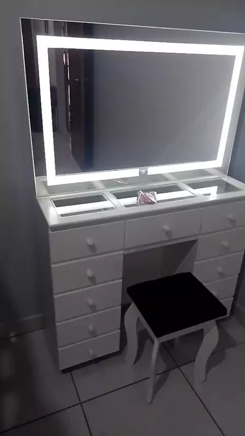 A Juliana realizou o sonho de sua filha, que era ter uma penteadeira de princesa! Hoje, ambas tiveram seus sonhos concretizados com a penteadeira de 1m com moldura de LED e touch, uma peça encantadora! Ficamos muito felizes em fazer parte desta realização. Não perca a chance de transformar o sonho de alguém em realidade com nossas penteadeiras encantadoras. Acesse nosso site e descubra a magia!