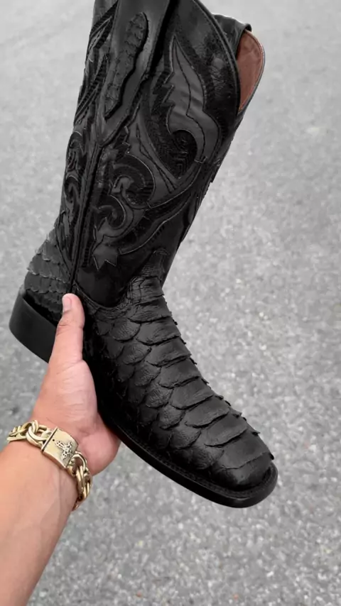 “TOTAL BLACK” AVAILABLE TODAY 7:00pm CT#alfawesternwear#alfawesternwearboots゚viral#texas#exclusive#cowboyboots#boots#botasvaqueras#westernwear##cowboyoutfit#redbottoms#pythonboots