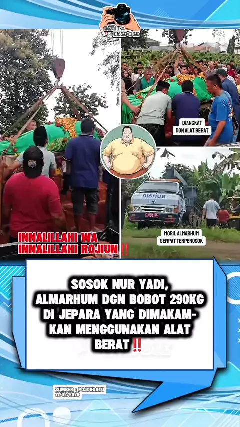 Sosok Nur Yadi, Almarhum dgn bobot 290kg di Jepara yg dimakam kan menggunakan alat berat⁉️ #Obesitas #makam #jepara