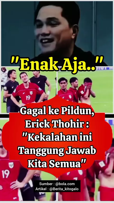 Gagal Pildun , erick Thohir : "tanggung jawab kita semua" #timnas #Sepakbola #PSSI #erickthohir #sport