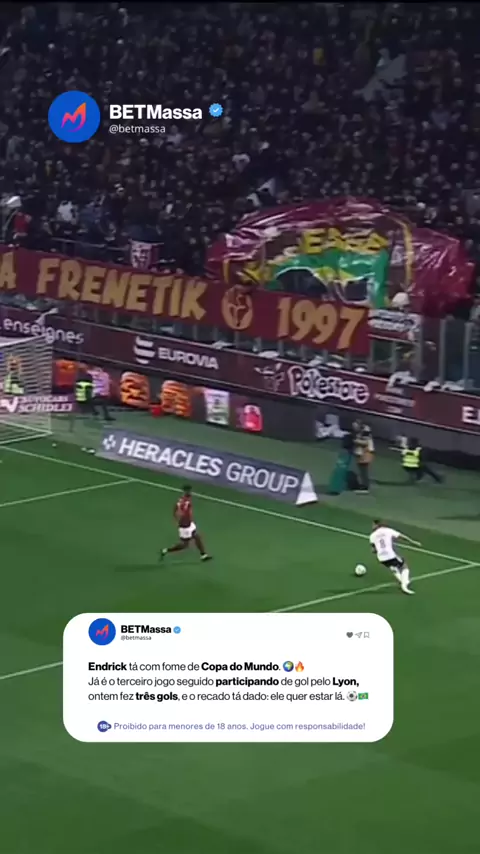 ELE NÃO PARA! 🔥⚽ Emprestado pelo Real Madrid, Endrick simplesmente marcou 3 gols no fim de semana com o Lyon e mostrou que o futuro já chegou. O garoto tá voando na Europa… e isso é só o começo. 🚀🇧🇷 Quem também ficou impressionado? 👀🔥 #Endrick #FutebolEuropeu #HatTrick #BetMassa