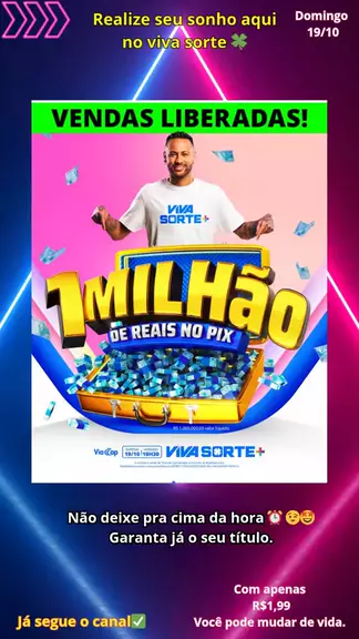 🍀 Revendedor autorizado do viva sorte ✅ 🏅ID.84271 🌐Criador de conteúdo 🎞🎶 🍀 sorteio para todo o Brasil. compre o seu bilhete no link do meu Instagram, clique no botão ao lado👇🏽