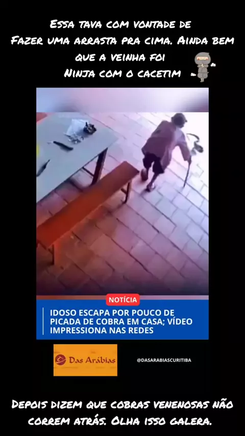 Véia ninja com o cassetim na mão.
