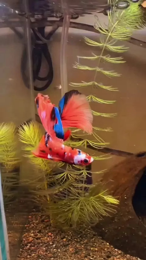 Lindo Betta Koi Nemo Long Tail 🧡💙🖤 #betta #peixebetta #aquarismo