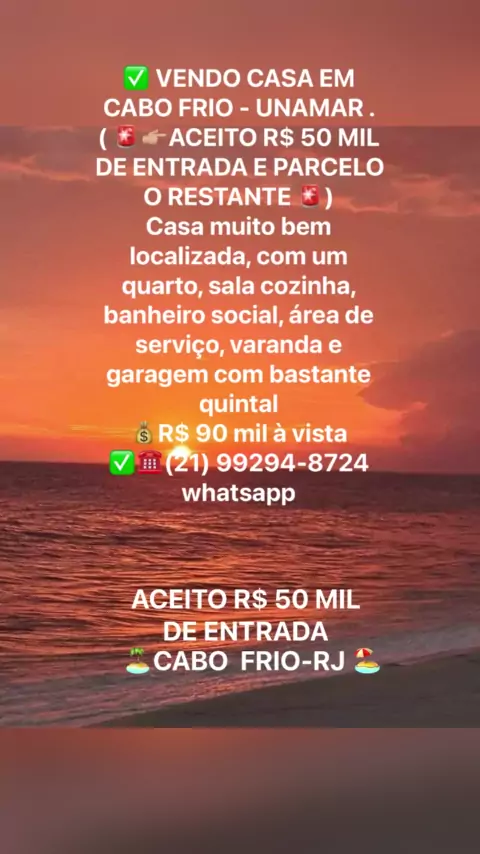 VENDO CASA EM CABO FRIO NA CIDADE DE UNAMAR RJ , VALOR R$: 90 MIL , TEL (21)99294-8724 #SouFãDoZico #vendocasa #vendo #imoveis #cabofrio