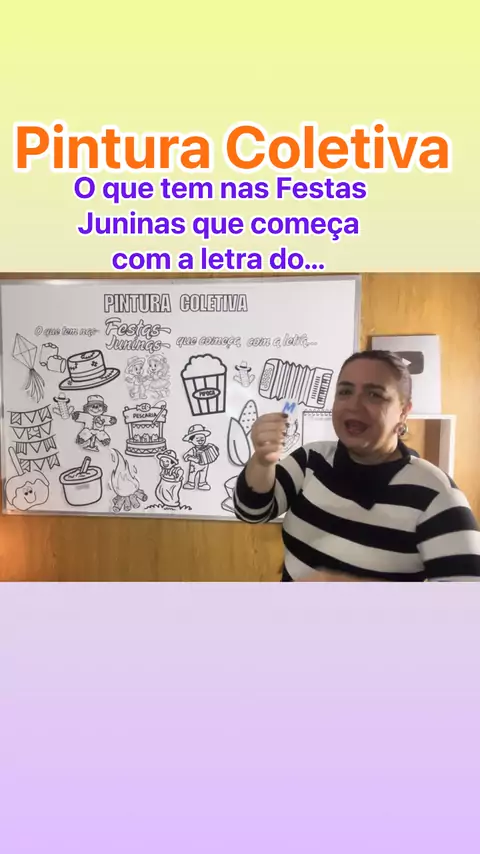 ✨🌽 Pintura Coletiva Junina: O que tem nas Festas de São João? 🌽✨ Neste vídeo, trago uma atividade super divertida, interativa e cheia de significado para fazer com as crianças durante o mês de junho! A proposta é uma Pintura Coletiva Junina, onde as crianças participam de um sorteio de letras do alfabeto e, a partir da letra sorteada, identificam elementos das festas juninas que comecem com essa letra. Me chama no privado para adquirir o seu😉 #festasjuninas