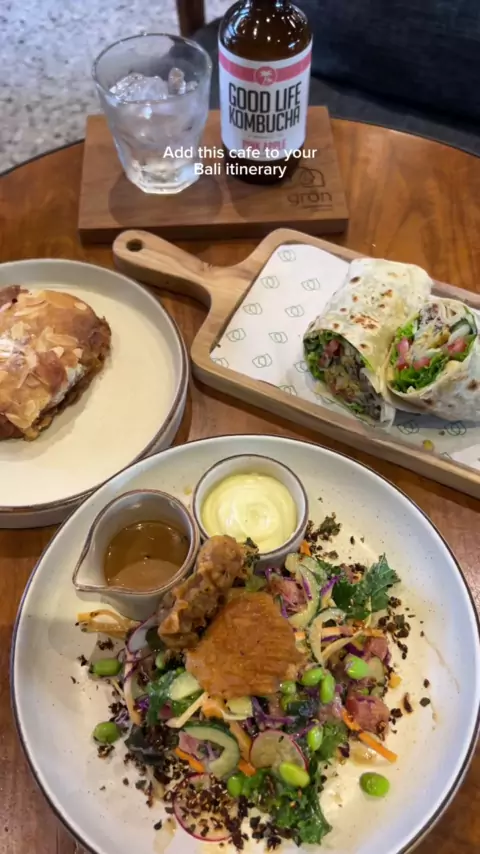 Looking for a fab brunch spot in Canngu, Bali? You need to add Gron to your list of places to check out. This is such a great cafe if you’re looking for a co-working cafe, they’ve got strong Aircon and even stronger wifi 🫶🏼 I tried the poke bowl with tuna, the veggie falafel wrap and, of course, I had to finish things off with an almond croissant 🤤 Save this video and follow for more Bali food tips! 📍 Gron Canggu#balirestaurantrecommendation#balifoodguide#canggufood#balirestaurant#cangguca...