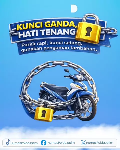Kunci Ganda, Hati Tenang Kejahatan bisa terjadi kapan saja, terutama saat kendaraan ditinggal tanpa pengamanan yang memadai. Karena itu, biasakan parkir dengan rapi, kunci setang, dan gunakan pengaman tambahan seperti gembok atau rantai. Langkah sederhana ini dapat memperkecil kesempatan pelaku kejahatan dan melindungi kendaraan Anda dari pencurian. Ingat, mencegah selalu lebih baik daripada kehilangan.