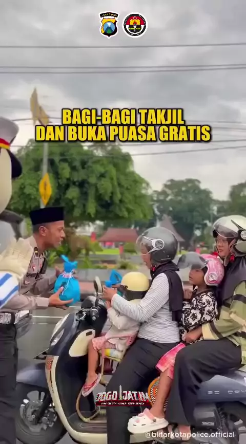 Kapolres Blitar Kota AKBP Kalfaris Triwijaya Lalo, S.I.K., M.I.K., bersama Personel Polres Blitar Kota membagikan takjil kepada para pengguna jalan yang melintas di kawasan Taman Pecut, Kota Blitar pada Sabtu, 21 Februari 2026. Kegiatan ini menjadi wujud kepedulian Polres Blitar Kota kepada Masyarakat, khususnya bagi mereka yang masih berada di perjalanan saat waktu berbuka puasa tiba. Semoga takjil yang dibagikan dapat membawa manfaat dan keberkahan bagi kita semua.