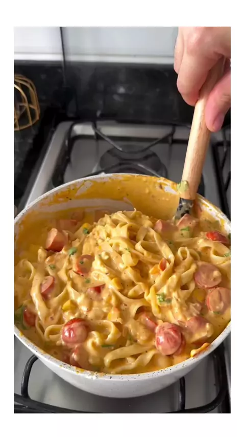 Macarrão com Salsicha cremoso 🤤😋 #massa #Comida #escondidinho #CarnaKwai