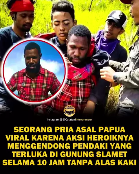 Yeki Kogoya, seorang pahlawan tanpa alas kaki dari tanah Papua. Gunung Slamet menjadi saksi sebuah aksi kemanusiaan yang luar biasa. Seorang pemuda asal Papua bernama Yeki Kogoya, atau yang akrab disapa Lambu, mendadak viral setelah melakukan aksi heroik yang hampir tak masuk akal bagi orang biasa. Tanpa alas kaki dan hanya mengandalkan kekuatan fisiknya, Lambu menggendong seorang pendaki yang terluka menuruni jalur terjal Gunung Slamet. Perjalanan itu memakan waktu 10 jam penuh perjuangan. Bay...
