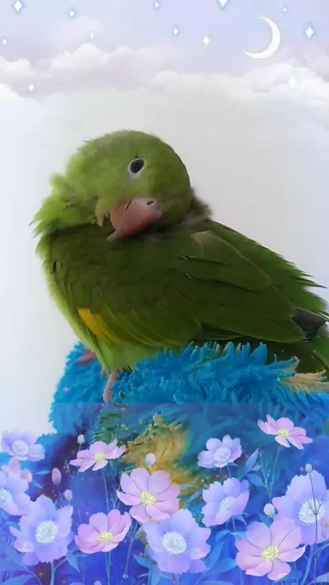 Cochilando mamãe, meu pequenininho... 💤💤💫✨ Que soninho gostoso ❣️😍💚 #periquito #passaros #pet #kwai #viral