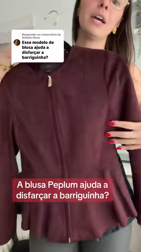 A responder a @Scheila Alves Blusa peplum disfarça a barriguinha? Resposta sincera: na maioria dos casos, não. O volume começa exatamente onde muita mulher acumula barriguinha, o que pode criar efeito de projeção. Até pode funcionar com cinta + calça reta, mas não é a opção mais estratégica pra quem se incomoda com essa região. Aqui, a gente fala de vida real e caimento de verdade ✨😉 conta comigo para tirar todas as suas dúvidas gatona😘 #consultoriadeimagem #montagemdelook # you #blus...