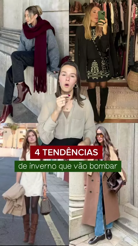 TENDÊNCIAS DE INVERNO QUE JÁ ESTÃO BOM-BAN-DO! Se você ama moda e quer atualizar seus looks de inverno com peças certeiras, salva esse post porque aqui vai um resumo do que tá em alta: 1. Bota de cano alto - Ela voltou com tudo e deixa qualquer look mais poderoso! 2. Maxi casaco - Aquele casaco oversized que, além de quentinho, entrega MUITO estilo. 3. Vestido reto curtinho - Ideal pra usar com meia-calça e botas. Elegante, moderno e feminino. 4. Cor blueberry - Um tom sofisticado entre o rox...